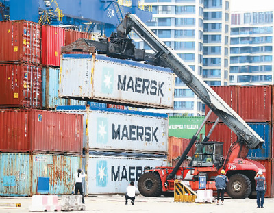 海南自貿(mào)港免稅商品在海口港集裝箱碼頭完成卸貨,并順利通過海口港海關(guān)查驗(yàn)后放行。