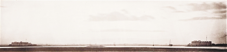 1872年,蘇格蘭攝影師約翰·湯姆遜拍攝的海口東西炮臺(tái),鏡頭正面是海口城。 辛世彪 提供