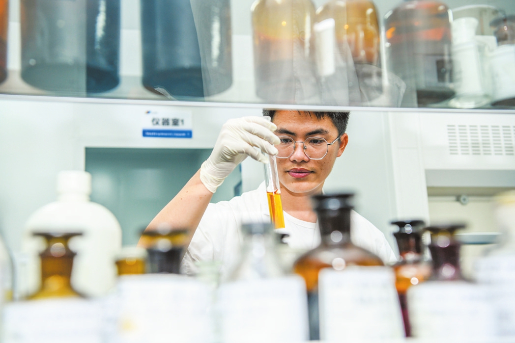 在海南聚紳藥業(yè)有限公司理化室內(nèi),工作人員在進(jìn)行顯色反應(yīng)實(shí)驗(yàn)。海口日?qǐng)?bào)記者 康登淋 攝