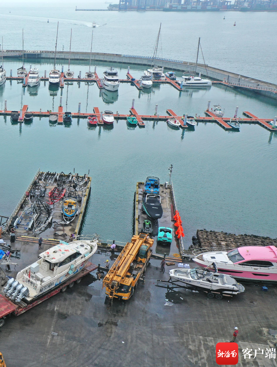 第四屆消博會(huì)游艇展的參展游艇陸續(xù)抵達(dá)海口市國(guó)家帆船基地公共碼頭。記者 汪承賢 攝