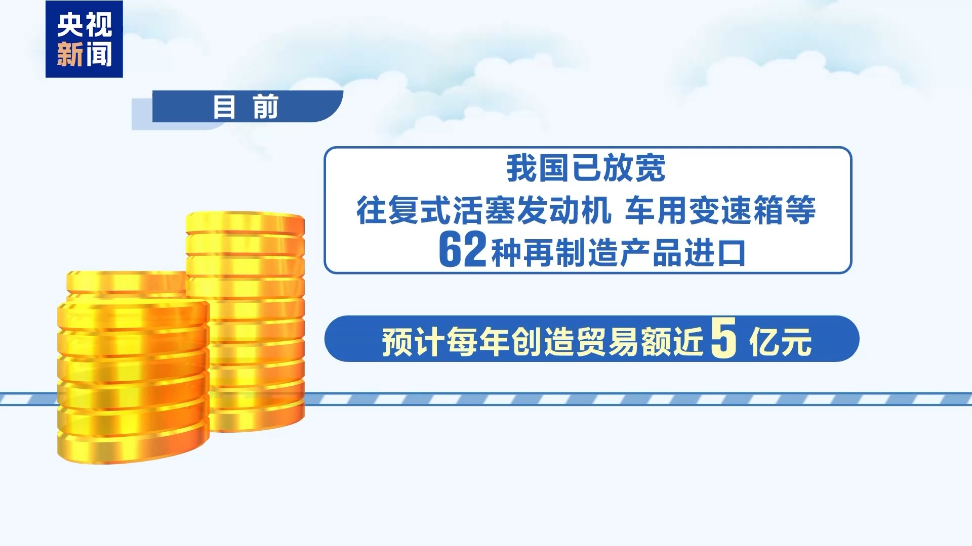 目前,我國已放寬了往復(fù)式活塞發(fā)動機、車用變速箱等62種再制造產(chǎn)品進口,預(yù)計每年創(chuàng)造貿(mào)易額近5億元。