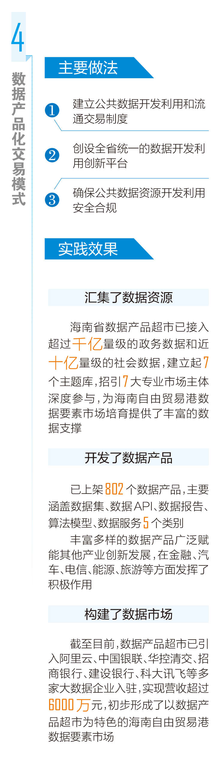 海南省數(shù)據(jù)產(chǎn)品超市已接入超過千億量級的政務(wù)數(shù)據(jù)和近十億量級的社會數(shù)據(jù),建立起7個主題庫,招引7大專業(yè)市場主體深度參與,為海南自由貿(mào)易港數(shù)據(jù)要素市場培育提供了豐富的數(shù)據(jù)支撐 開發(fā)了數(shù)據(jù)產(chǎn)品