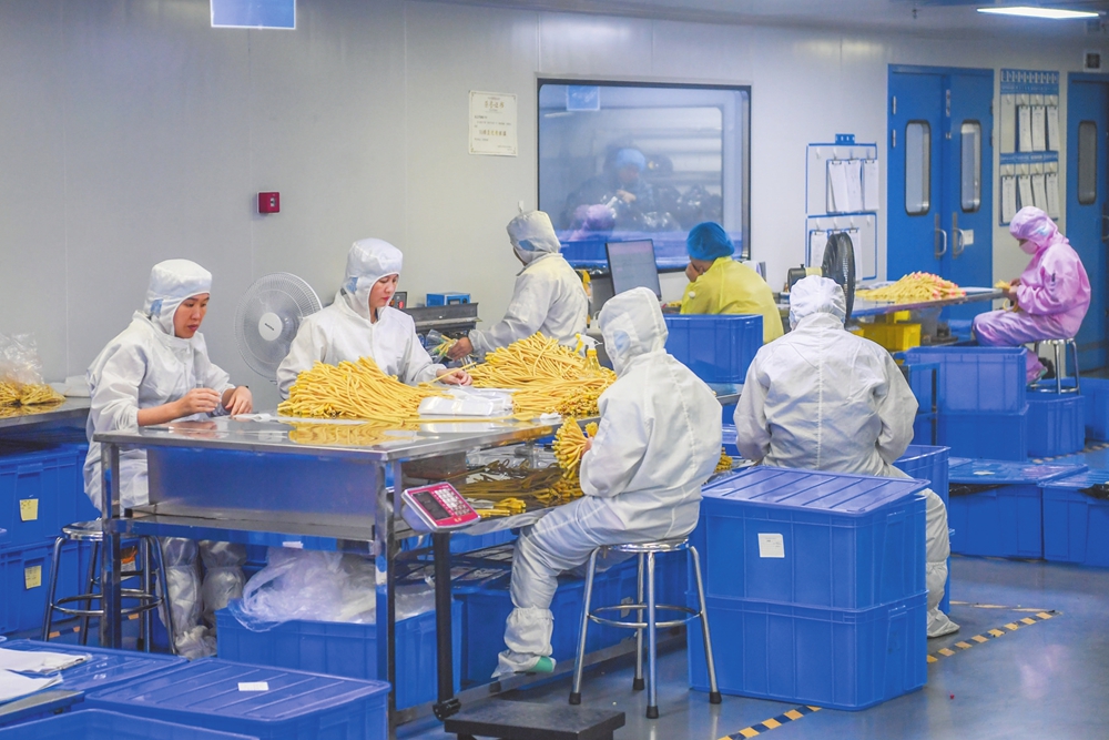 在位于美安生態科技新城的海南維力醫療科技開發有限公司,工人在生產車間內包裝產品。海口日報記者 孫士杰 攝