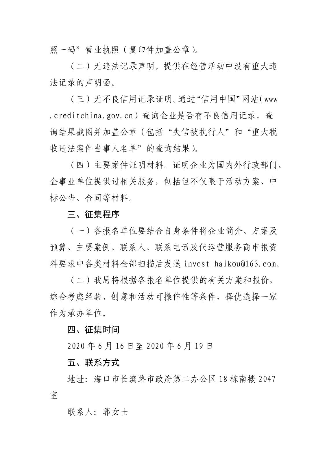 上一篇:海口國際投資促進局關于公開征集“投資海口”微信(新聞客戶端)代運營服務商的公告