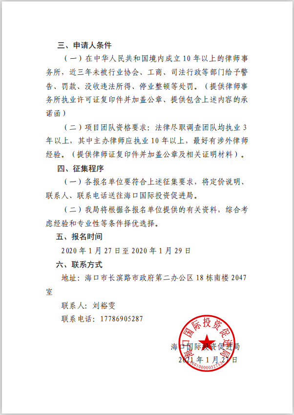 海口國際投資促進(jìn)局關(guān)于公開征集專項法律盡職調(diào)查服務(wù)機(jī)構(gòu)的公告.pdf