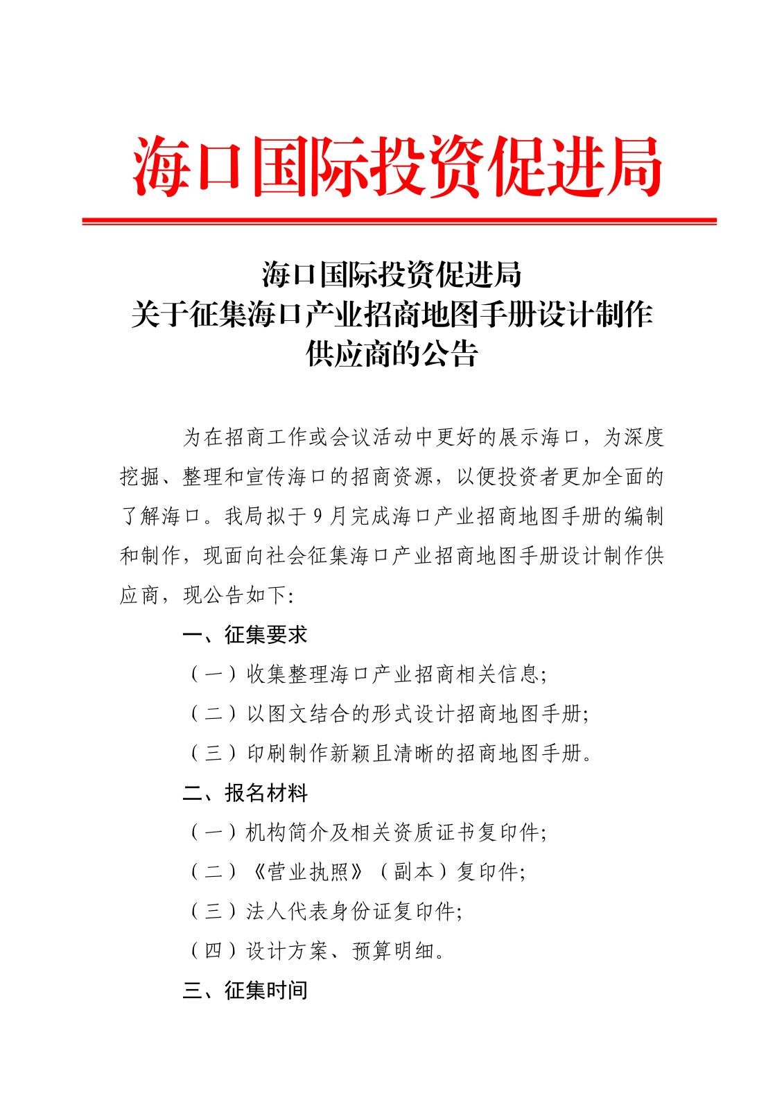 ??趪H投資促進局關于征集??诋a業招商地圖手冊設計制作供應商的公告