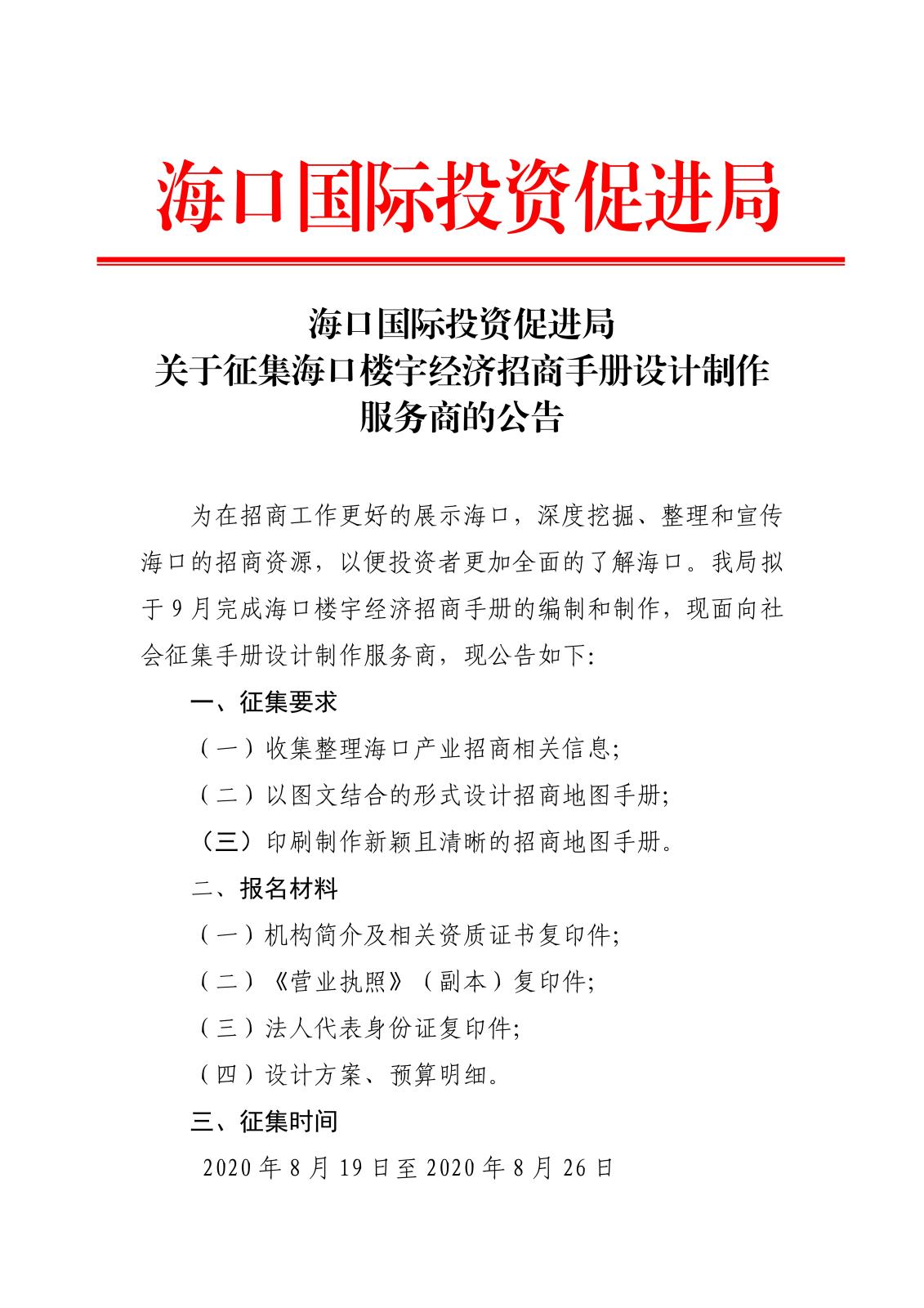 上一篇:海口國際投資促進局關(guān)于征集海口產(chǎn)業(yè)招商地圖手冊設(shè)計制作供應(yīng)商的公告
